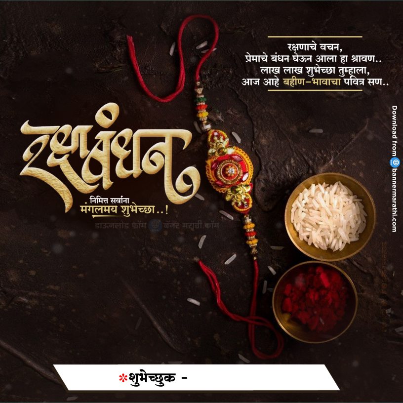 भाऊ आणि बहिणीचा हा सण दरवर्षी साजरा केला जातो, जो हिंदू दिनदर्शिकेनुसार श्रावण महिन्याच्या पौर्णिमेला साजरा केला जातो, जो मुख्यतः इंग्रजी कॅलेंडरनुसार ऑगस्ट महिन्यात येतो. रक्षाबंधन मराठी बॅनर रक्षाबंधन हा सण भावा – बहिणींमध्ये साजरा केला जातो. या दिवशी बहिणी आपल्या भावांना संरक्षणाचा धागा बांधतात (राखी) आणि भाऊ आपल्या बहिणींचे आयुष्यभर संरक्षण करण्याचे वचन देतात. या सणाच्या दिवशी सर्व बंधू भगिनी एकत्र देवाची पूजा करून आशीर्वाद मिळवतात.